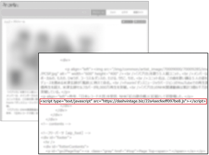 デジタルアーツでこのインシデントを独自に検証したところ、A社Webサイトの複数のページに不審なコードが記述されていた痕跡を発見しました。